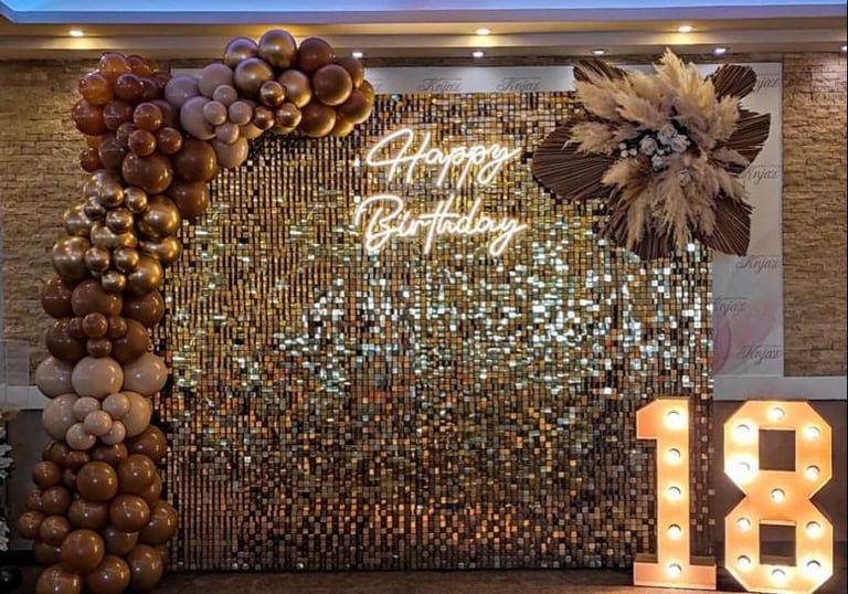 A sparkling, reflective backdrop available in multiple colours and sizes. Ideal for statement photos, parties and corporate events.