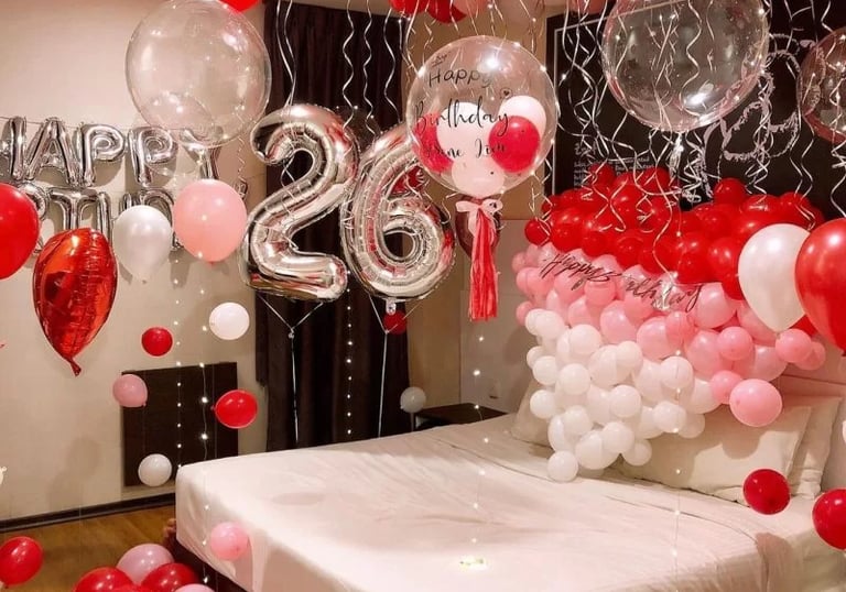 A soft, stylish room transformation with balloons - perfect for surprises, date nights or special gestures.